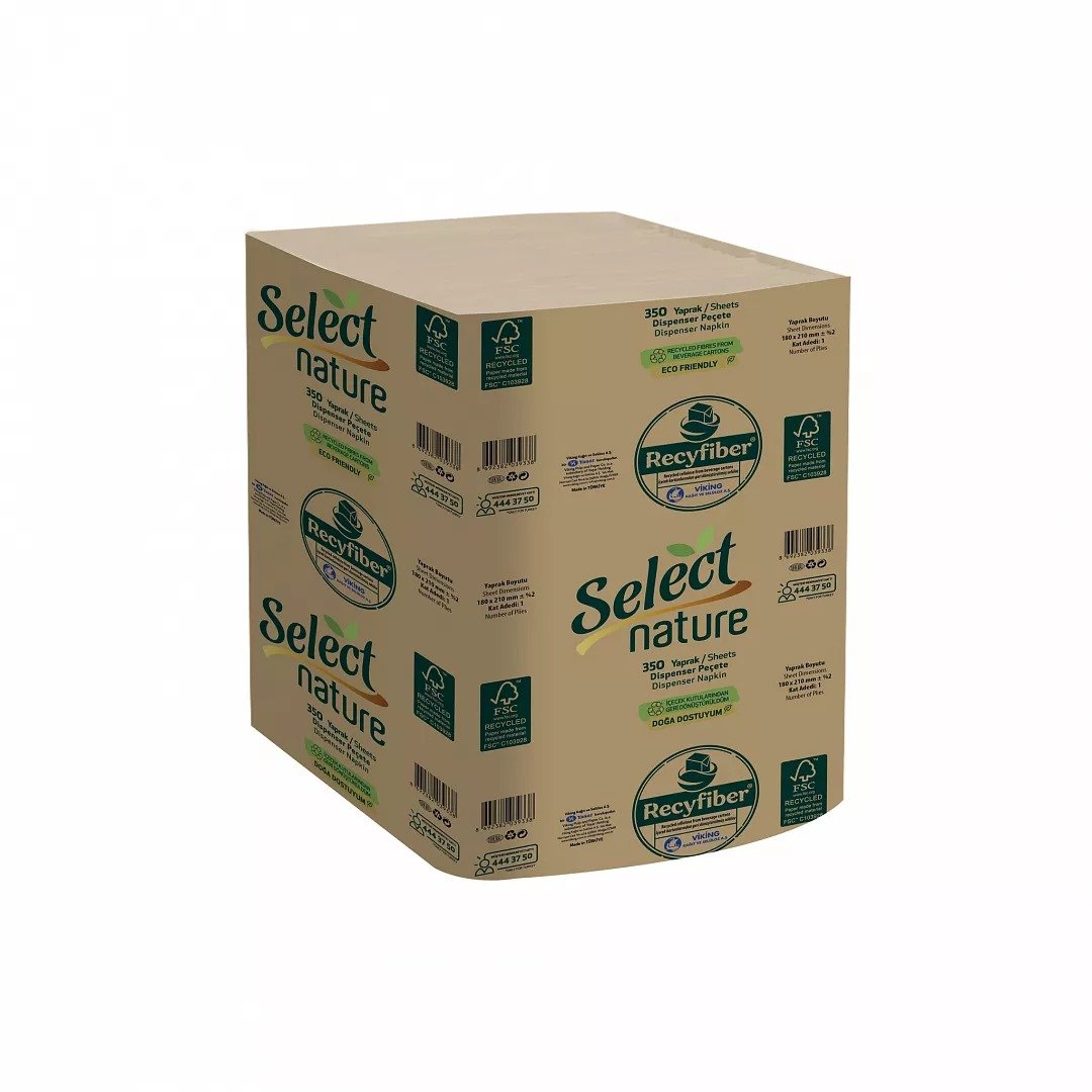 Təbiət dostu, ağardılmamış, 3 qatlı Select Nature Z qatlama dispenser kağızı. Ofis və ictimai istifadə üçün ideal seçim.